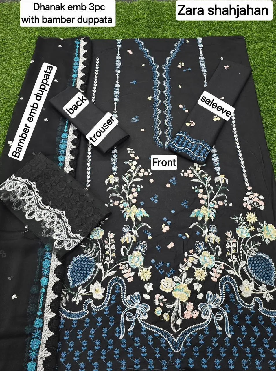 Exquisite black embroidered suit with dupatta -3 PCs se